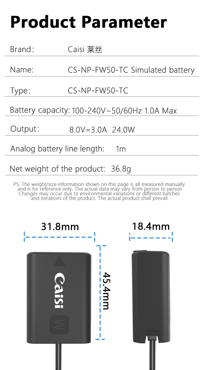CAİSİ NP-FW50 TYPE-C Kukla Pil Kablosu Caisi marka fotoğraf makinesi pili, şarj, mikrofon, çanta, sürekli ışık, optical, tripod, ekran koruyucu