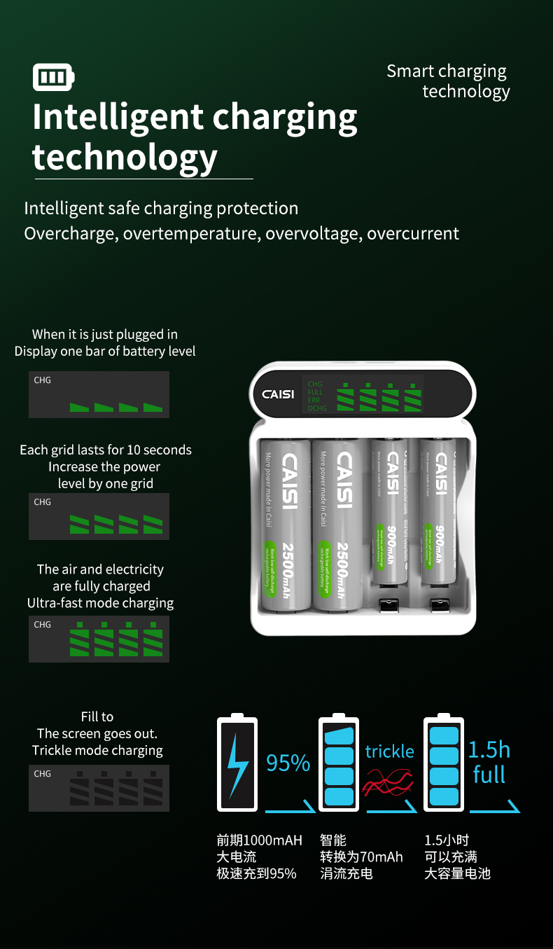 CAİSİ CS-NM-4C KIT Şarj Edilebilir 2500mAh Pil NiMH AA (4'lü Pil + Şarj Aleti)